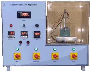 Copper Purity Apparatus is designed to determine the purity of copper by electrolysis method. The sample containing copper is dissolve in sulfuric -& nitric acid mixture and a regulated current is passed through the solution. The copper is deposit on Cathode which is weighed to determine the amount of copper in the sample.
