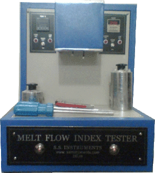 Melt Flow Index (MFI) is a measure of how many grams of a polymer flow through the die in ten minutes. The test is performed at a given temperature depending on the plastic. The force used to push the plastic through the system is supplied by a weight which sits on top of a piston.