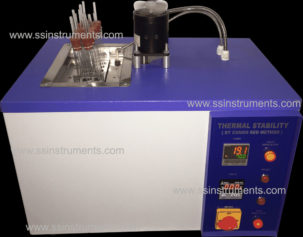Thermoplastics and PVC (Plasticized Polyvinyl Chloride) materials when exposed to continuous heat, degenerates and emit harmful acidic gases. The instrument is manufactured for testing PVC materials against their thermal stability at higher temperature.